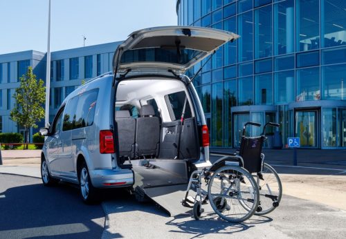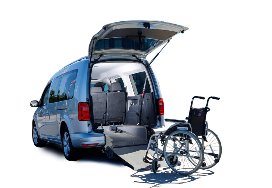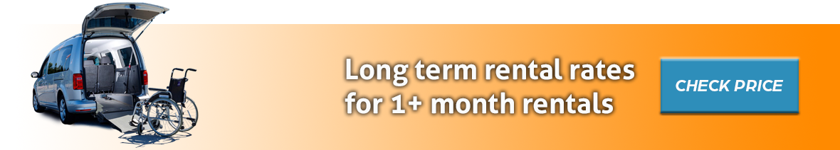 Wheelchair Accessible Vehicle available as self-drive rental car. Seats driver, 4 passengers + one sitting in a wheelchair.